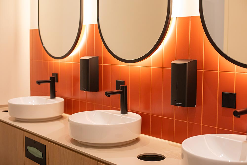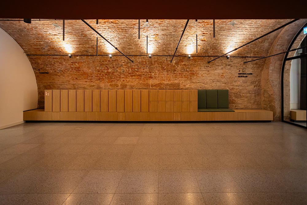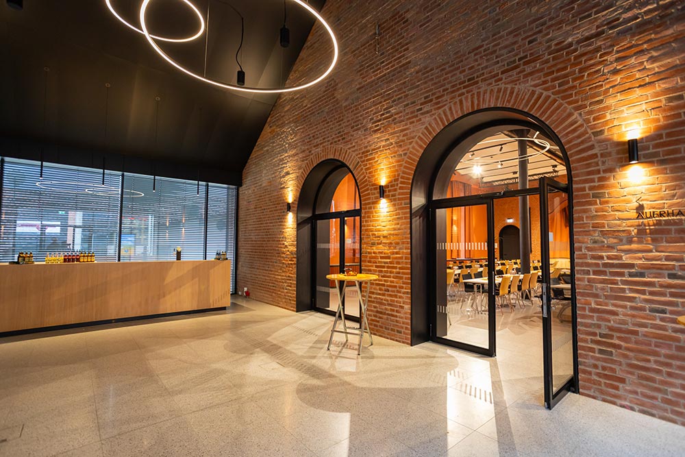 Die Eingangsbereiche der Halle sind großzügig gestaltet und bieten den Besuchern einen angenehmen Empfang. Sie sind hell und einladend gestaltet und bieten ausreichend Platz für den Einlass der Gäste.